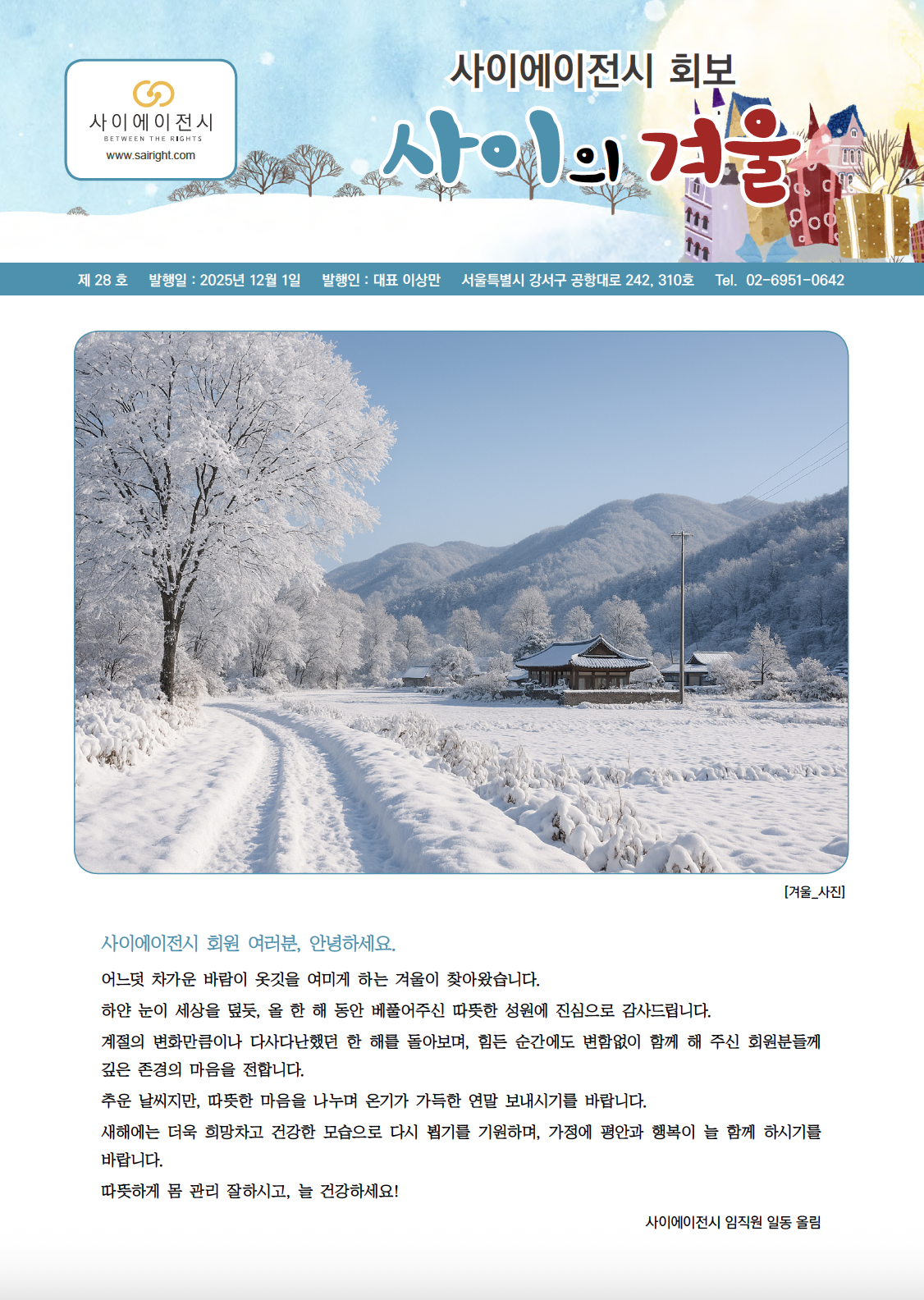 연간 4회 회보를 발행하여 회원님들과 에이전시 소식, 저작권 및 기타 정보를 공유하고 있습니다.